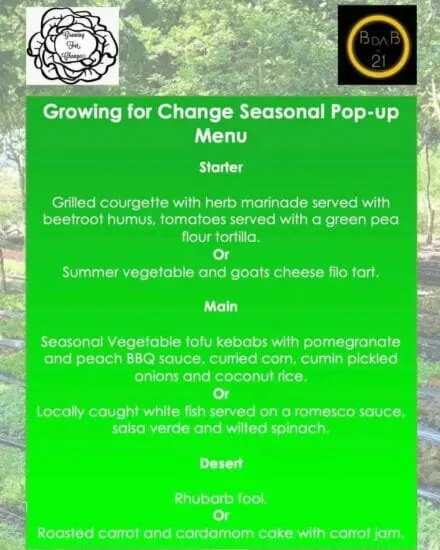 This pop up is a unique opportunity to experience a menu using organic produce grown on our Allotment/ Market Garden project.